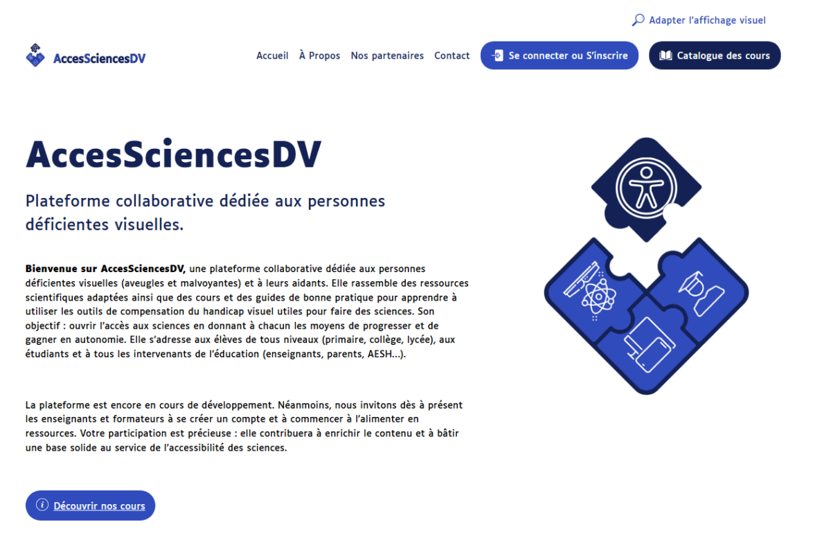 Plateforme collaborative dédiée aux personnes déficientes visuelles, centralisant des ressources scientifiques adaptées. Développé avec Ludovic Petitdemange (directeur de recherche CNRS, malvoyant) et Salomé Nashed (chercheuse, aveugle). Thème WordPress, plugins et back-office entièrement conçus sur mesure pour une accessibilité totale.