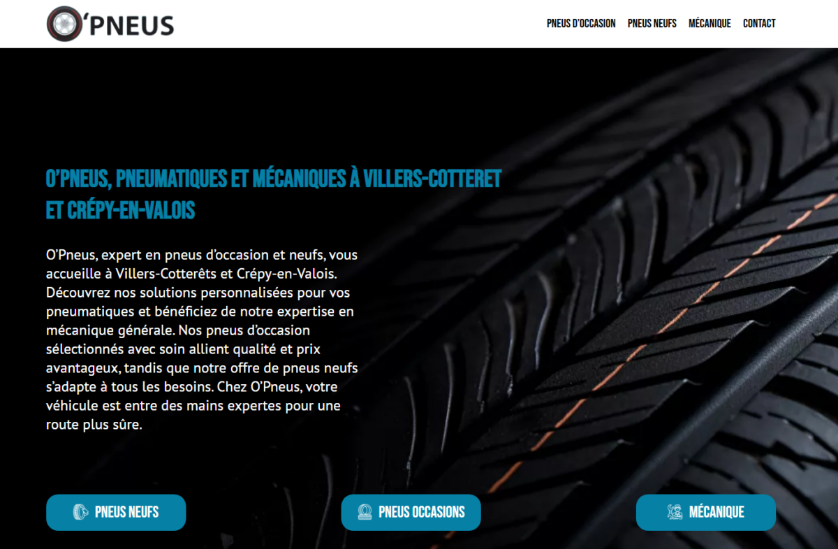 Site vitrine pour un centre de pneumatiques et mécanique implanté à Villers-Cotterêts et Crépy-en-Valois. Tarifs pneus d'occasion, promotions et prestations mécaniques gérables en autonomie depuis le back-office. Thème WordPress développé de zéro à partir de maquettes Figma.